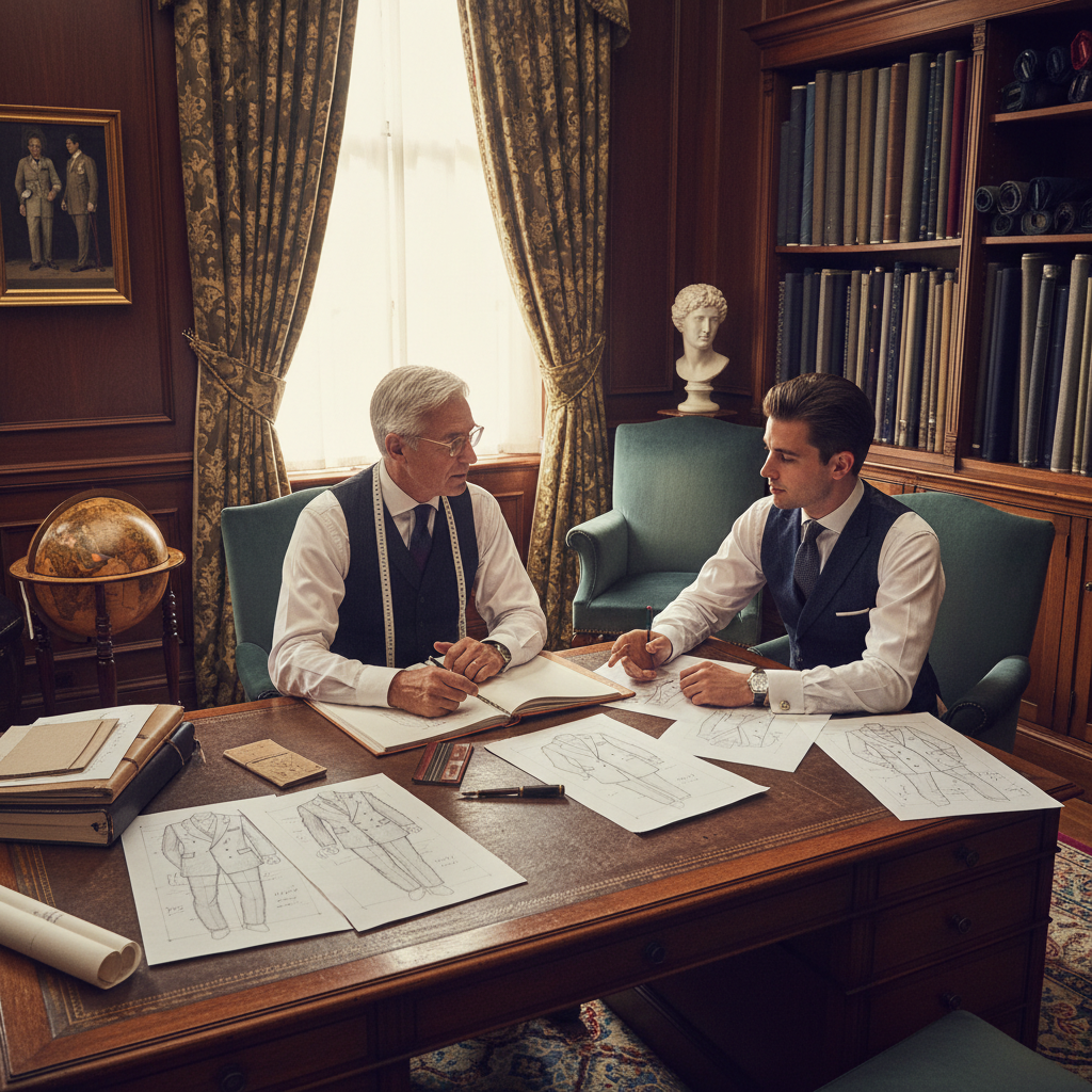 The tailor or assistant will discuss the design details with you, including single- or double-breasted fronts, lapel styles, pocket options, and trouser cuts. Each element will be customized according to your needs and personal preferences.